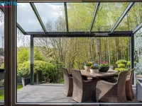 Terraza con una impresionante vista del bosque, chimenea para noches acogedoras;