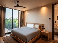 Esta residencia cuenta con dos dormitorios king-suite, ambos diseñados para proporcionar la máxima comodidad y privacidad. La suite principal cuenta con una cama king-size, un baño privado en suite, y vistas al jardín sereno, creando un retiro tranquilo. El segundo dormitorio, una suite cerrada, ofrece lujos similares con el beneficio añadido de acceso independiente, lo que lo hace ideal para los huéspedes, familias o aquellos que desean un nivel adicional de privacidad.