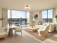 Diseñado con interiores cálidos y acogedores, esta residencia llave en mano cuenta con una zona de estar y comedor que sirve como el corazón de la casa. El amplio dormitorio principal ofrece un retiro privado con un baño en suite como spa y una generosa zona de vanidad. Amplias terrazas extienden su espacio habitable al aire libre, lo que le permite empapar en las vistas panorámicas del puerto deportivo y el mar espumoso más allá.