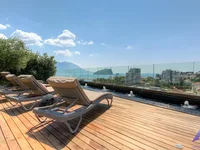 Le presentamos en venta un exclusivo ático en el centro de Budva. El apartamento está situado en la séptima planta de un edificio de lujo. Tiene 378m2, de los cuales 175m2 viven y el resto es espacio exterior de lujo, un pequeño jardín y una piscina con fuente.