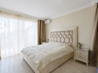 El apartamento está amueblado por los más altos estándares europeos con techos altos y suelos de mármol.