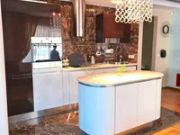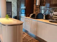 Sala de estar: espectaculares ventanas panorámicas de piso a techo, piezas moldeadas a mano en las paredes y el techo, área de cocina, paredes y pisos están revestidos de mármol caro, encimeras de cocina con granito natural, área hecha a mano de TV-Pano. Materiales de acabado, muebles, candelabros, lámparas, cortinas, fabricados en Italia, cine en casa.