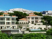 D4-171. Villa de lujo en Rezevici En venta se construirán dos villas de lujo, cada una con una superficie de 600m2, en el pueblo más prestigioso de la costa, en Rezevici. Las villas están ubicadas en primera línea del mar con una elegante vista panorámica de toda la costa y sus pintorescos alrededores.