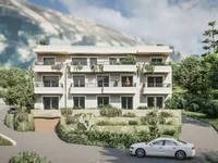 Boka Kotor Bay, distrito de Dobrota. Un pequeño edificio de apartamentos en construcción con una clase de piscina de lujo.
