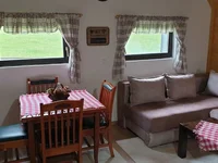 El área de la casa es de 115m2, consta de tres plantas y el área de la parcela es de 429m2. En el primer nivel hay una terraza cubierta, un lugar para almacenar leña y una habitación para almacenar inventario. En el segundo piso hay una sala de estar con cocina, estufa-chimenea y un baño. En el tercer piso del ático hay dos dormitorios con una hermosa vista desde las ventanas. La casa se puede alquilar por completo.