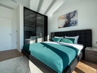 The main bedroom is a large wardrobe made to order, with glass doors and a designer bathroom, which includes a Jacouszi Arga bath, shells and taps from real copper from the lead manufacturer Gessi.