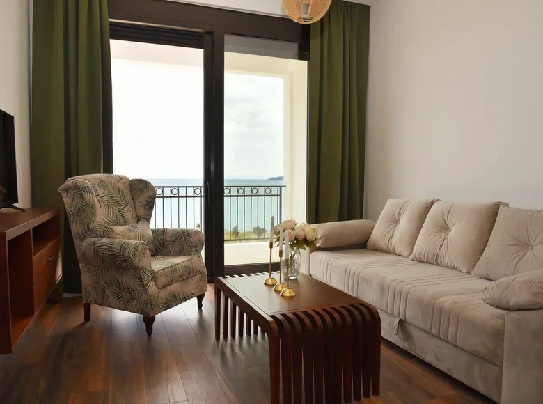 En venta, un nuevo apartamento de un dormitorio en Reževići con una plaza de aparcamiento y vistas al mar. El apartamento está situado en un edificio residencial más pequeño y tiene una superficie de 55m2 Consta de un pasillo, un salón con vistas al mar, un dormitorio, un baño y una terraza con vista al mar. El apartamento está totalmente amueblado y se vende como se ve. El precio del apartamento incluye una plaza de aparcamiento. Este es uno de los pocos apartamentos en venta en uno de los lugares más atractivos de la costa de Montenegrin, Reževići.