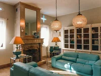The third bedroom: is a colonially decorated space with a large bed, with a leather headboard and oriental style elements. The room also has a cozy reading alcove and an en-suite bathroom, matching the style of the bedroom with a mosaic shower and luxurious stained glass sconces.