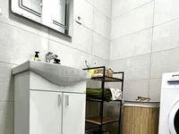 The apartment is located in a house in a developed area of Budva. Nearby is a school, a large supermarket, cafes, restaurants. The sea and the embankment are a 15-minute walk away.