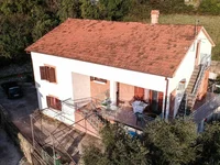 The house consists of three floors. The first two floors are ready for living, equipped with furniture and appliances. On the landing there are two bedrooms, a living room, a bathroom, and a separate studio apartment with an area of 40 square meters. The first floor includes four bedrooms, a living room, a kitchen with kitchen area, a bathroom and two terraces with excellent sea views. The second floor is not completed.