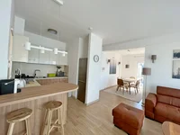 Todos los apartamentos tienen el mismo diseño, cuadratura (66 metros cuadrados) y consta de 2 dormitorios, un baño, un amplio salón con ventanas panorámicas y una terraza con increíbles vistas al mar. Los apartamentos situados en la primera planta tienen un bono adicional - una gran terraza vallada a lo largo del perímetro de todo el apartamento, que no está incluido en el material cuadrado general del apartamento. Hay sólo 1 apartamento en cada planta del edificio. Un intercomunicador está instalado en la casa, toda la zona está bajo vigilancia de vídeo.