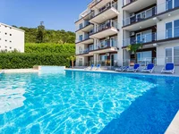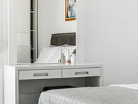 Apartamentos espaciosos y luminosos a 77 metros cuadrados en la tercera planta, totalmente equipados con muebles y equipamiento moderno, incluyendo aire acondicionado, suelos calentados, videovigilancia, Internet y TV. Los apartamentos disponen de zona de cocina combinada con sala de estar, dos confortables dormitorios, un baño equipado y una amplia terraza con vistas. El diseño del apartamento está hecho en colores naturales, ventanas panorámicas se instalan en cada habitación, de modo que la luz natural penetra cada rincón de la habitación y hace que el espacio sea muy aireado y ligero.