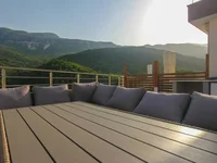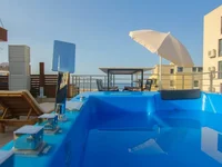 Disposición del apartamento: salón con comedor combinado con cocina abierta, dos dormitorios, dos baños y amplio balcón. El apartamento está amueblado y equipado y está vendiendo con todos los muebles. El apartamento se vende con la exclusiva ley de uso de la terraza, que se proporciona con una vista panorámica al mar.