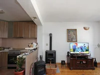El segundo y tercer piso de la casa son un apartamento dúplex de 60 m2. En el primer nivel (segundo piso) hay una cocina combinada con un salón y un baño. En el segundo nivel (tercera planta) hay tres dormitorios pequeños y un baño.