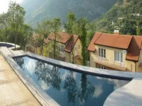 Elegante apartamento en un nuevo complejo residencial en la ciudad de Bar.Este proyecto encarnaba la idea de un estilo de vida moderno y una vivienda cómoda. Todas las costas del cálido mar del sur están densamente construidas. Hoteles, campings, restaurantes y cafeterías de playa en verano están llenos de turistas y turistas. Vivir en esta sociedad es muy divertido, pero no siempre es cómodo. Y literalmente a diez minutos de la playa, al lado de la montaña se encuentra el pueblo de Monterey. Un autobús gratuito para los residentes del pueblo le dará la oportunidad de elegir dónde relajarse en una playa ruidosa, en un restaurante del resort o en su casa (o apartamento), en una zona verde con una piscina cerrada para personas externas. Una calumnia de cristal de montaña es ruidosa debajo, los caminos conducen a ella, y las campanas de cabras y ovejas se inclinan en granjas vecinas distantes. Un amplio valle montañoso desciende hasta el mar, y un santuario cristiano se encuentra en la palma de su mano. Debajo se retuerce la carretera, alrededor del reino verde del bosque. El aire es fresco y está lleno de olores coníferos y picantes de hierbas. Un pequeño pueblo de 11 casas, cercado y ajardinado. Sistema autónomo de suministro de agua, agua de manantial recargable, terrazas verdes, área pública con piscina. En el territorio de 2 piscinas para adultos y niños, un área de parque forestal bien mantenida para relajar caminos de acceso convenientes para garajes y estacionamiento.El pueblo es atendido por una empresa de gestión.El apartamento tiene una superficie de 43 metros cuadrados.m. con una entrada independiente de la calle.Una gran cocina-comedor y un dormitorio, este espacio es suficiente para una familia pequeña para una estancia confortable. Para automóviles se proporciona estacionamiento. Si lo desea, también puede instalar una chimenea en la sala de estar para reuniones acogedoras durante la estación fresca (el escape de humo está presente en las casas).También se ofrece a la venta un confortable apartamento de 118 metros cuadrados.m. a un precio de 174.000 euros.