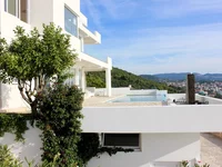 Nueva villa hermosa en el pueblo de Dobra-Woda, Bar Riviera. La villa está construida utilizando tecnologías de construcción modernas de acuerdo con el estándar de más alta calidad. El área del interior de la villa es de 450 m2, el área de terrazas es de 400 m2, la parcela es de 600 m2. Frente a la villa hay una piscina panorámica (12x4 m2). Diseño de la villa: cuatro dormitorios, una gran sala de estar con cocina totalmente equipada, 5 baños y varias terrazas con hermosas vistas al mar. Toda la casa tiene pisos cálidos, un sistema de videovigilancia y un sistema de aire acondicionado. Hay un garaje para dos autos. La villa se encuentra a 70 metros sobre el nivel del mar, que ofrece impresionantes vistas del mar Adriático.