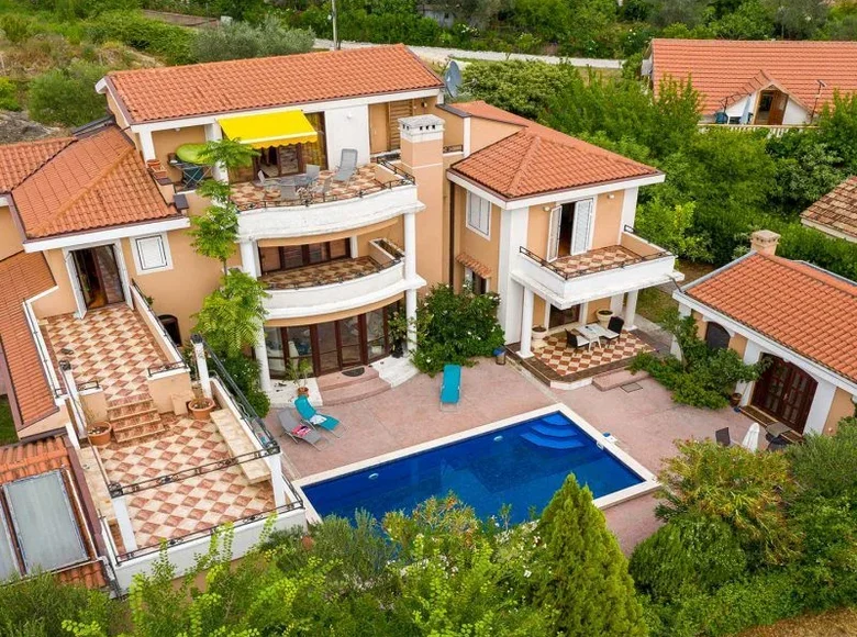 La casa principal se puede utilizar como un todo, para una familia grande, o como 2 apartamentos separados de 200 m2 cada uno. En primer lugar, con 154m2 planta baja (habitación-comedor-cocina, gran entrada con aseo-lavadero y sala técnica), luego la habitación principal (v baño) y el segundo dormitorio en la primera planta. El segundo apartamento, con su propia entrada independiente en la primera planta, tiene 2 dormitorios - cada uno con un baño, y un salón, comedor y cocina en la segunda planta. Además, hay una amplia terraza de 34 m2 con vistas a la bahía de Tivat. Cada habitación tiene su propia terraza grande.