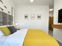 El apartamento consta de un amplio salón con cocina y comedor, tres dormitorios, dos baños y una gran terraza, a la que se puede acceder desde el salón y el dormitorio principal. Impresionantes vistas desde cada habitación y una vista panorámica desde la terraza. El apartamento es absolutamente nuevo y nunca ha sido utilizado. El apartamento tiene un proyecto de diseño de interiores con materiales y elementos de mobiliario de alta calidad. El ático está completamente equipado y equipado con todos los muebles, electrodomésticos, decoración y todo lo necesario para vivir. Los baños tienen un sistema de suelo radiante.