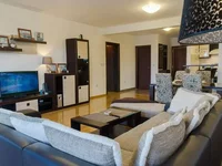 Un maravilloso y acogedor apartamento con dos dormitorios. El apartamento está situado en la segunda planta de un edificio moderno con ascensor. La superficie total del apartamento es de unos 115m2. Cocina totalmente equipada, todas las habitaciones son grandes, 2 baños grandes, aseo en el salón, amplia terraza que se puede acceder desde cada habitación, vista parcial al mar. Todas las habitaciones están orientadas al sur, el apartamento es seco y luminoso. La peculiaridad del apartamento es su diseño bien pensado y el uso eficiente del espacio libre. En los pasillos hay armarios altos al techo, que encajan perfectamente en el interior.