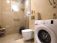 - amplio baño con ciruela moderna, lavadora y armarios;