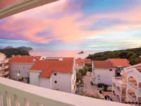Una gran casa de apartamentos con vistas al mar, superficie total de 700 m2, está en venta, situada a sólo 350 metros de la playa en Petrovac.