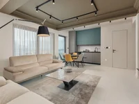 La zona interior del apartamento es de 85 m2 y consta de un salón de planta abierta con comedor y cocina, tres dormitorios, un baño y un aseo de invitados, una terraza con vistas panorámicas al mar.