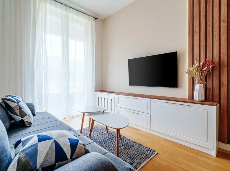 Apartamento en venta con dos dormitorios en Becici. El apartamento tiene una superficie de 65 m2 y se encuentra en la 11a planta de la casa con ascensor. Apartamento: amplio salón, combinado con cocina y comedor, dos dormitorios, dos baños y terrazas con vistas al mar y la ciudad El apartamento está amueblado y equipado y vendido con todos los muebles. A poca distancia del apartamento hay tiendas, cafeterías, una parada, y al mar sólo 260 m.