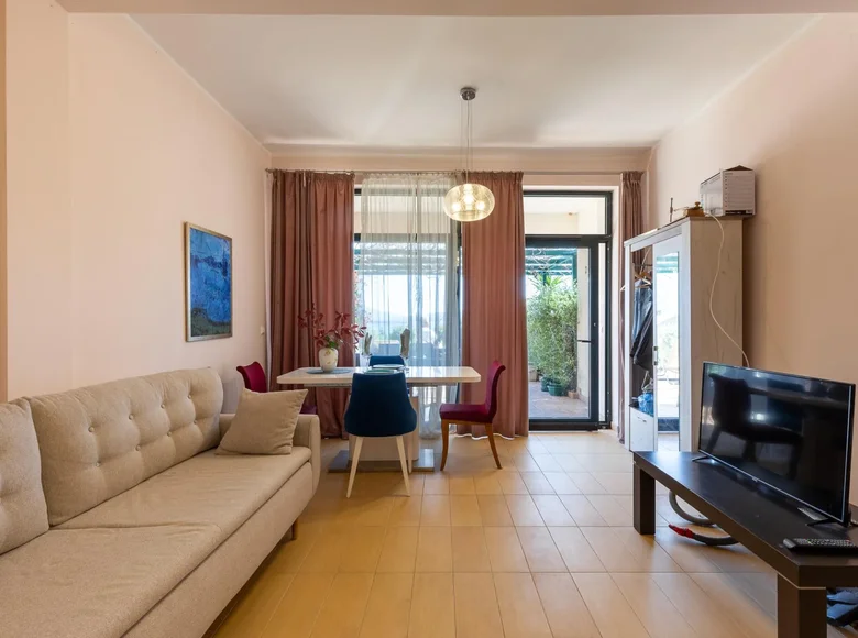 El apartamento es moderno y funcional, ideal para vivir cerca del mar. El diseño incluye un salón, combinado con la cocina y el comedor, con acceso directo a una amplia terraza con magníficas vistas al mar. El apartamento tiene dos dormitorios, uno de los cuales está situado en la parte superior y tiene un balcón con vistas directas al mar, que crea un maravilloso lugar para relajarse. Hay dos baños totalmente equipados. El apartamento está amueblado con muebles modernos y está equipado con aire acondicionado, que proporciona el máximo confort. La ubicación es tranquila y acogedora, cerca de la playa y la principal infraestructura. Al mismo tiempo, el apartamento está situado cerca de la carretera principal, que proporciona acceso conveniente y comunicación de transporte. La elección perfecta para aquellos que aprecian el diseño moderno, la comodidad y las impresionantes vistas al mar.