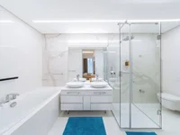 Equipado con cocinas poliformes integradas con electrodomésticos Miele y la sala sanitaria Dombrahcht.