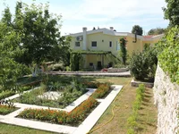 • La planta baja es un espacio autónomo ideal para familiares, invitados o personal. El espacio interior del piso incluye un hall de entrada totalmente funcional, despensa y lavandería, cocina, aseo y dos dormitorios. Una de las habitaciones fue diseñada para la reconstrucción en la sauna. También hay un garaje para dos coches con tres trasteros.