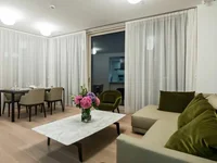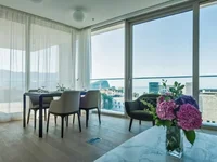 Apartamentos en venta en Dukley Residences, Budva. El interior de todos los apartamentos está decorado con detalles de madera, piedra y vidrio, así como amplias terrazas con hermosas plantas y vistas al mar. Los apartamentos están equipados con un sistema de casa inteligente. Los dos primeros pisos del edificio están diseñados para locales comerciales, por lo que los residentes de Dukley Residences tienen a su disposición restaurantes, cafés, boutiques y bancos a lo largo del brazo. Además, pueden utilizar un aparcamiento subterráneo de tres niveles para 70 plazas de aparcamiento. Apartamentos gratis: