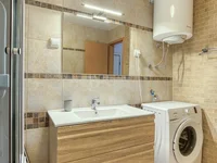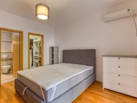 FOR SALE: SPACIOUS, FULLY FURNISHED APARTMENT IN BUDVA WITH GARAGE AND TESLA CHARGER For sale: a beautiful, fully equipped apartment located in a quiet and well-maintained area of Budva. The apartment is situated on the ground floor of a four-story building built on cascading terrain, giving it a unique charm — the living room terrace is elevated and appears as if it’s on the first floor, while the bedrooms are on the ground level. Layout: • Spacious living room with kitchen and access to the terrace • Terrace with a private fenced yard • Bathroom with shower cabin • Children’s/guest bedroom • Master bedroom with en-suite bathroom (bathtub), walk-in closet, and terrace access Total: 2 bedrooms and 2 bathrooms. The apartment is fully furnished and move-in ready. The living area includes a billiard table, adding a touch of elegance and a perfect spot for relaxation and entertainment. Additional features: The price includes a garage space of 19 m², equipped with a Tesla electric vehicle charger, allowing residents and guests to conveniently charge their electric cars. This property offers an ideal combination of comfort, functionality, and modern technology — perfect for family living or as an investment for rental purposes.