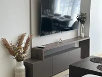 A brand new luxurious 55m2 one bedroom apartment in Dobrota, Kotor, consists of open floor plan living room with kitchen and dining area, hallway, bathroom, bedroom and a terrace with a view towards the sea and the Boka Bay. The apartment is fully furnished with new luxurious furniture, and has never inhabited. Two spots with a ramp is included within the rental price. The apartment is 5 min walk to the beach, restaurants, schools and kindergarten nearby. City market is 2 min by car or 10min walking.