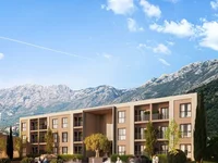 El edificio tiene 2 plantas, mientras que el apartamento está en la primera planta. Hay un aparcamiento delante del edificio. Está conectado por una carretera de asfalto a la carretera principal. Este proyecto se terminará en julio de 2027.