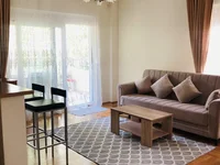The apartment is located on the ground floor of a four-story building, designed in a classic coastal style. The area boasts well-developed urban infrastructure. A grocery store and the Parma restaurant are within walking distance. The sea is approximately 1.2 kilometers away.