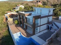 Una lujosa villa moderna en venta, situada en la zona tranquila y verde de Krimovica. Diseñado para vivir todo el año, esta villa ofrece una comodidad excepcional, impresionantes vistas al mar y a la montaña, y una mezcla perfecta de elegancia y funcionalidad. La propiedad se encuentra en una parcela de 450 m2, con una superficie total de 380 m2. Incluye una zona de aparcamiento privado para tres coches y una gran piscina de 90 m3 con una amplia terraza solarium de 13 metros. La villa ha sido presentada para el proceso de legalización, asegurando que está en proceso de obtener la condición jurídica completa.