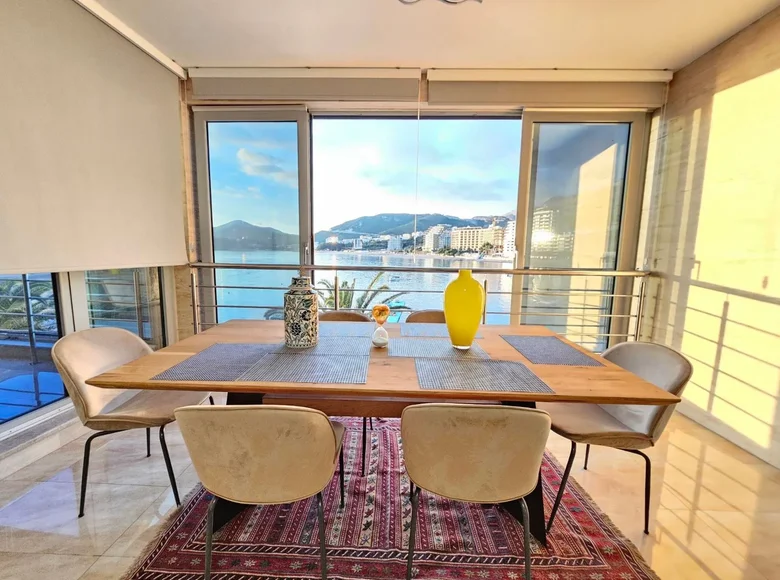 El apartamento está elegantemente diseñado y equipado con acabados interiores modernos de alta calidad. Consta de un amplio salón con cocina y comedor, dos confortables dormitorios, dos baños y dos terrazas. Las grandes superficies de vidrio proporcionan mucha luz natural y crean un agradable sentido de apertura y conexión con el mar.