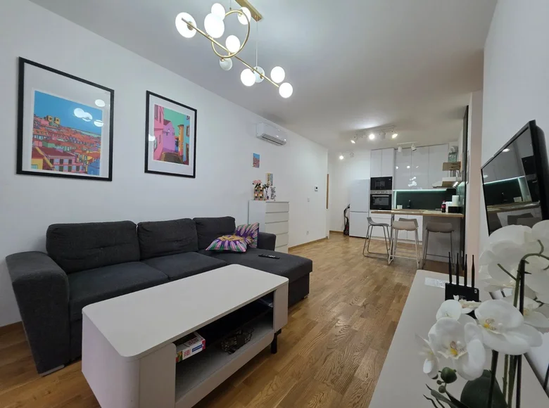 Venta es un apartamento de dos dormitorios con una superficie de 55m2 en Bečići, Montenegro. El apartamento está situado en la 3a planta de un nuevo edificio residencial con ascensor. Está diseñado de forma moderna y funcional, que consiste en un salón con cocina y comedor, pasillo, baño, dos dormitorios y terraza.