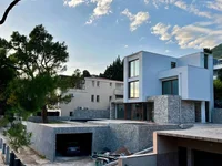 Una casa moderna con balcones panorámicos y una piscina, construida según un proyecto con permiso de construcción, se encuentra en una de las zonas más verdes y prestigiosas de Bar, el cinturón verde.