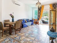 Venta Beci #7113. Ático 2 dormitorios, 83 m2, 8o piso en el complejo residencial "Volna". Proyecto de diseño. Nuevos muebles y electrodomésticos elegantes. Vista al mar desde la terraza. Sistema de aire acondicionado individual, excelente equipo técnico, techos altos 3.2 m, puertas correderas de vidrio que conectan el salón y la terraza crean un ambiente relajante de descanso y relajación. Distancia al mar: 300 m Infraestructura: restaurantes, tiendas locales (baquerías, supermercados, etc.) y la playa a poca distancia.