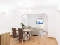Dvosoban stan sa dva kupatila, kompletno renoviran 2025. godine, sa balkonom i otvorenim pogledom na more i Sveti Stefan.