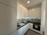 A cozy apartment with a total area of 58m2 (the terrace is included) is located in a picturesque suburb of Budva. The furniture and appliances are new. The windows offer magnificent views of the mountains and the sea, which can be reached within a 10-minute walk.