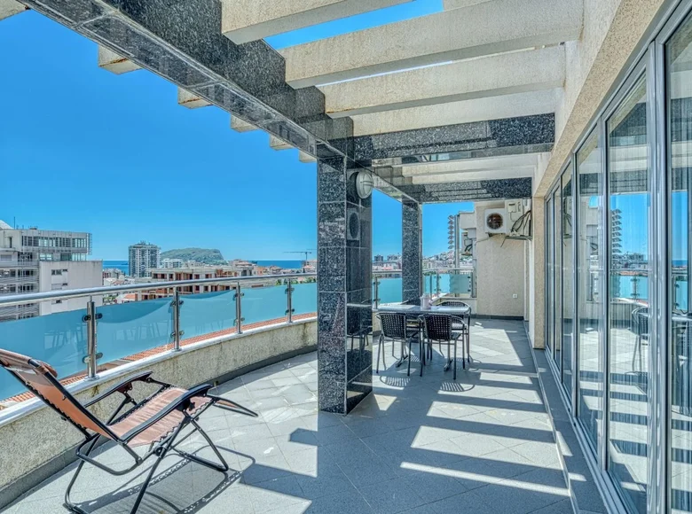 For sale: a luxury duplex penthouse in the center of Budva with a panoramic view of the sea and the city, including a garage space.
