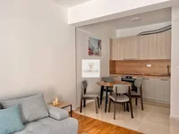 En el corazón de Bečići, un apartamento moderno y totalmente amueblado está a la venta, ideal para una vida cómoda o inversión. El apartamento está situado en una planta alta y ofrece una hermosa vista de montaña, con acceso directo a la piscina.