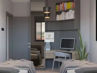El apartamento está situado en la segunda planta de un edificio residencial contemporáneo con un total de cinco plantas. Diseñado para ofrecer el máximo confort, cuenta con un amplio salón con mucha luz natural, una moderna cocina y comedor, dos acogedores dormitorios, y un elegante baño. Dos amplias terrazas aportan un valor extra, perfecto para relajarse y disfrutar del aire fresco. La vista de la ciudad mejora el ambiente agradable, mientras que la distancia al mar es de sólo 1.3 km, permitiendo un acceso rápido y fácil a las playas y el paseo marítimo.
