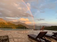 Rustic Pastrovski-Style Villa with Pool and Panoramic Views – Krusevica, Petrovac Located just 2.5 km from the center of Petrovac, in the peaceful and picturesque area of Krusevica, this charming villa offers privacy, space, and traditional Montenegrin character with authentic Pastrovski architectural elements. ✅ Key Features: Total area: 466 m² (legally registered, occupancy permit issued) Land area: 588 m², stone-paved with separate private driveway Structure: G + P + 1S (Ground + First Floor + Upper Floor) Bedrooms: 6 Bathrooms: 5 Kitchens: 3 Terraces: 4 Swimming Pool: 32 m² Garages: Parking for up to 5 vehicles Year Built: Construction began in 2009, completed in 2013 🏡 Layout Overview: Ground Floor: Spacious living room 2 bedrooms Bathroom + separate guest toilet Fully equipped kitchen with access to two terraces Fitness room Access to the swimming pool and outdoor relaxation area First Floor: Two physically independent apartments, each with: 2 bedrooms 1 bathroom Private kitchen Private terrace 📍 Location: Krusevica, Municipality of Budva (Petrovac) Just 65 meters from the main road, yet completely secluded Surrounded by nature and offering total privacy, with no close neighbors Ideal for family living, vacation rental investment, or a boutique guesthouse 💼 Legal and Construction Info: Ownership: 1/1 (fully registered) Usage permit: Issued Construction timeline: Started in 2009, completed in 2013 This villa presents an exceptional opportunity to own a rustic Mediterranean-style estate with versatile use – whether as a peaceful family residence or a luxury rental property in one of Montenegro’s most desirable coastal areas. Contact us today to schedule a viewing or request more information.