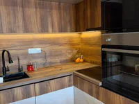 Apartment consist: kitchen with living room, dining zone, two bedrooms, bathroom and terrace.