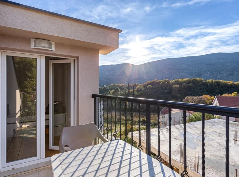 Apartamento en venta en una nueva casa en Igalo, Herceg Novi. El apartamento tiene una superficie de 76 m2 y se encuentra en la última 5 planta. Apartamento: cocina combinada con salón, dos dormitorios, dos baños y dos terrazas de 15 y 4.5 m2.