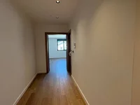 La superficie total es de 101.68 m2 e incluye un amplio salón con cocina, tres dormitorios, dos baños y una zona de entrada funcional. El apartamento está situado en la planta superior de un edificio con ascensor y garaje subterráneo.
