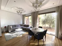 Entrar para encontrar un espacio amplio y luminoso con acabados de buen gusto y un diseño elegante diseñado tanto para la relajación como para el entretenimiento. La zona de estar y comedor de planta abierta fluye perfectamente a una terraza privada, perfecta para disfrutar del cálido sol marroquí o acoger a los huéspedes con vistas a la exuberante vegetación y palmeras.